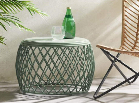 Featuring a lattice design, this iron table is both light weight and stylish.