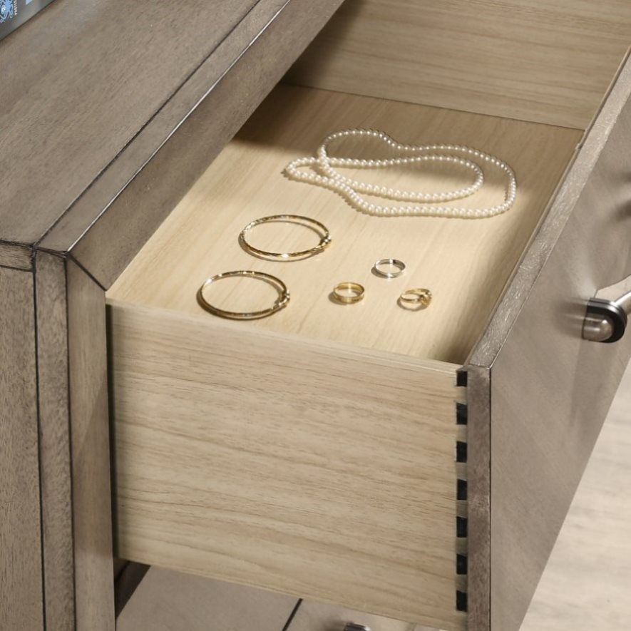 Complete with metal accents on the drawer pulls and dovetail drawer construction, our nightstand boasts both style and functionality, adding a touch of modern flair to your bedroom ensemble.