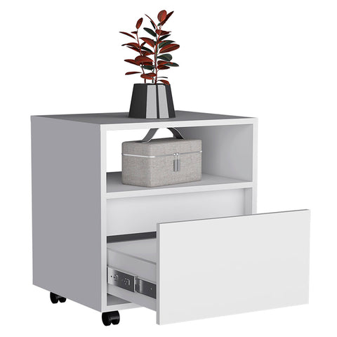 Austin Nightstand , End Table, Side Table Casters, Single Drawer-White B20092129