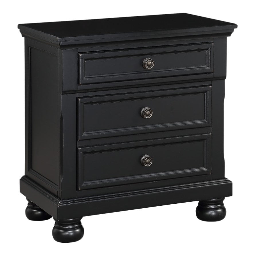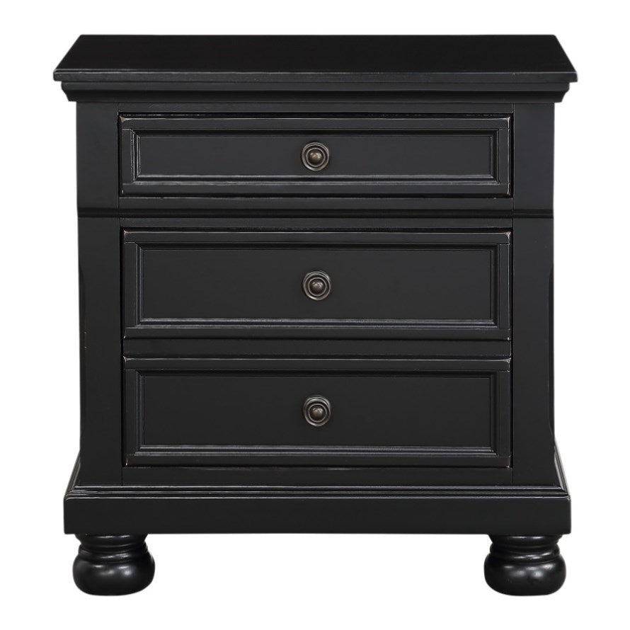 The nightstand's black sand-through finish can transition from traditional to country casual, with antiqued bronze knob hardware punctuating the look of each framed drawer front and bun feet providing support. The hidden drawer of the nightstand provides discrete storage space for your valuables.