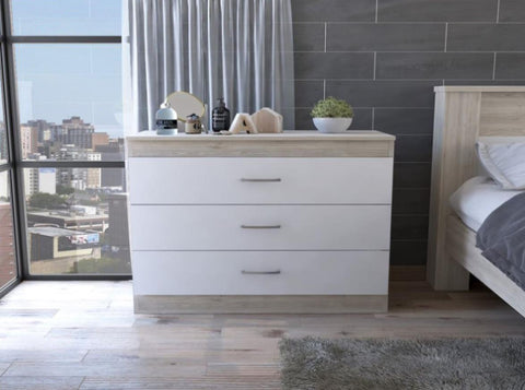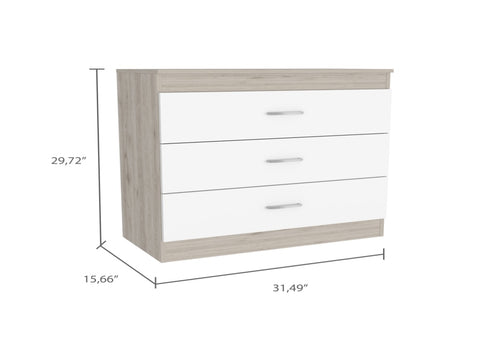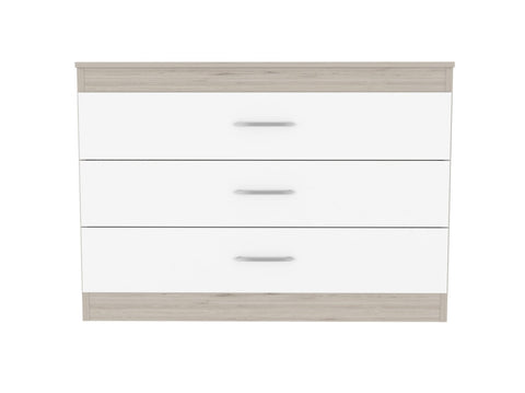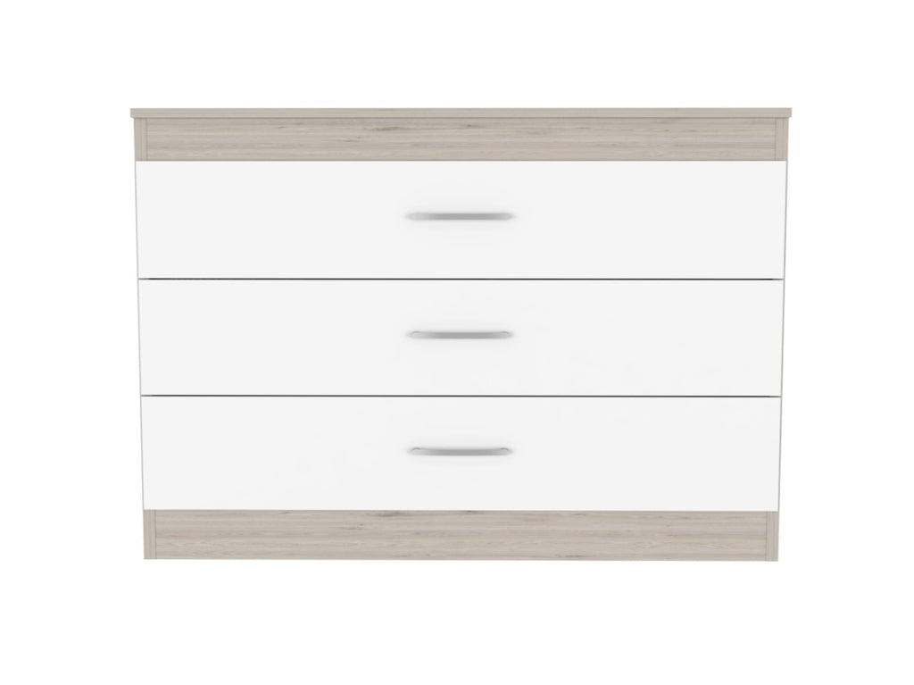 Add storage with a compact footprint when you select this modern three-drawer dresser. The stacked drawers are spacious enough for all manner of storage needs while the sleek finish and metal handles ensure a look that works in virtually any setting.