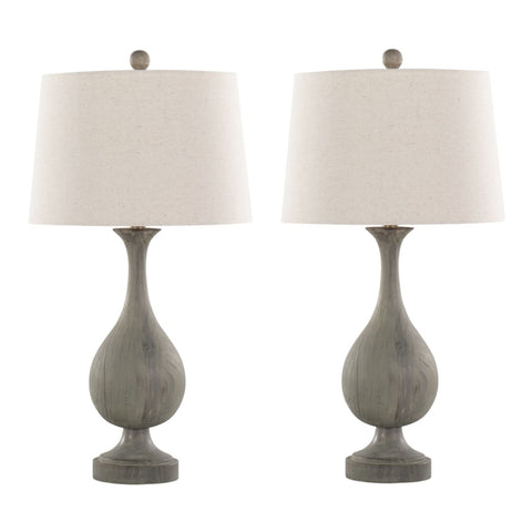 Add a rustic design element to your space with the Cipolla Table Lamp from Grandview Gallery by LumiSource. This polyresin lamp features a tapered linen drum shade and faux wood design and showcases a teardrop body with an hourglass stem. Whether resting on your nightstands, set on side tables in the den, or tucked into your favorite reading nook, this set of lamps adds a touch of warmth to any space.