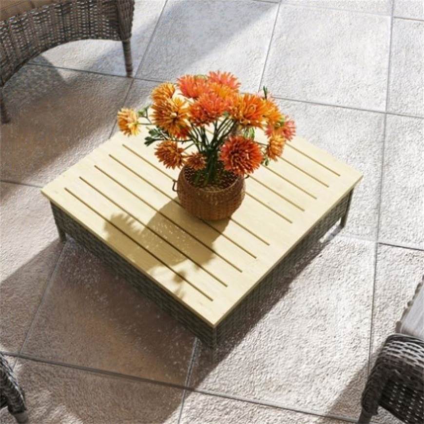 - - Rustic patio end table enhances garden aesthetics