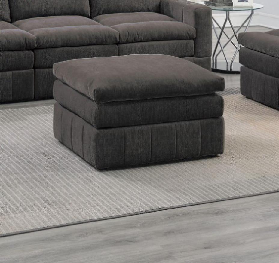 A triple layer cake comes to mind with this extraordinary designed modular sectional set. Each piece is crafted with three tiers topped with plush pillow-top seating and back support to match. Go straight to the moon with this set that provide comfort and style that is out of this world. Explore your options with a traditional sectional or try a loveseat, sofa and ottoman combo to suit your style and comfort. This set includes two of each of the following: Right/Left one-arm chair, armless chair, and ottoman. Available in a smooth suede-like fabric in granite and mink.