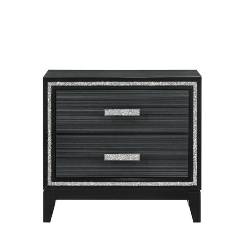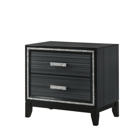 Contemporary Bedroom Furniture Black Finish Nightstand with Two Drawers Wooden 1pc Shimmering Silver B2741P323097