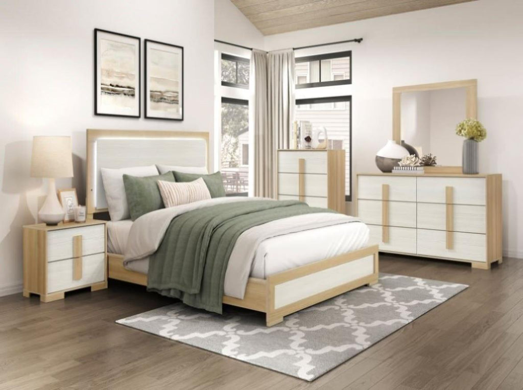 Contemporary Natural and White Finish 2-Drawer Storage Nightstand Wooden Bedroom Furniture 1pc B011P317207