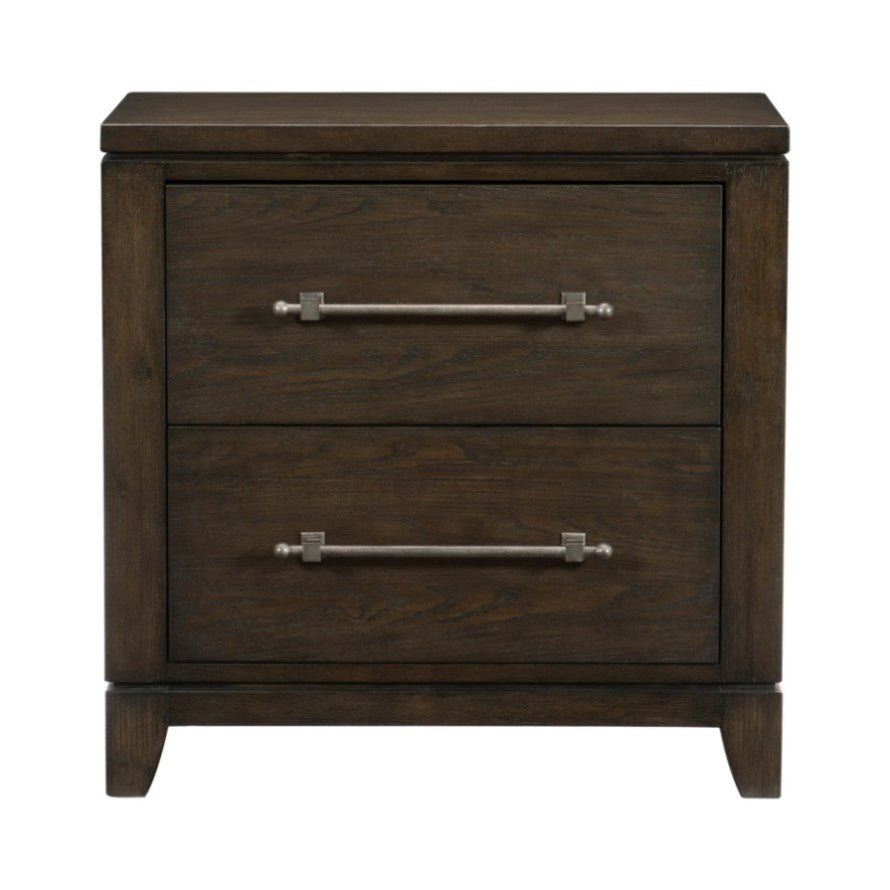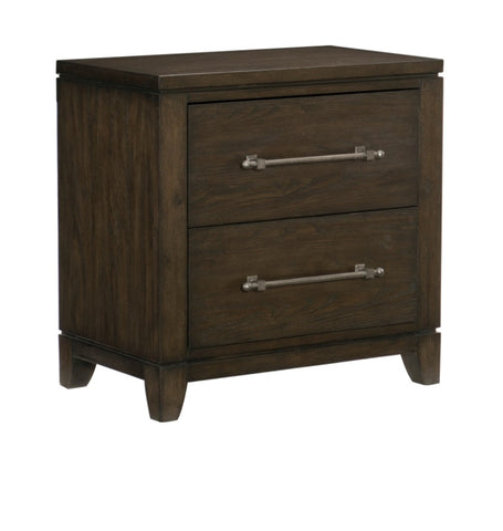 The contemporary styling of the Griggs Collection will be the perfect addition to your bedroom. The nightstand’s prominent ash veneer features a dark brown finish lending to the modern appearance. Elongated fixed drawer pulls center each drawer front further lending to the soft modern look. PRODUCT DIMENSIONS: Overall Dimension: 28" x 17" x 28"H Drawer interior: 22.5" x 14.75" x 10" (2) Listing Includes: One Nightstand Only.