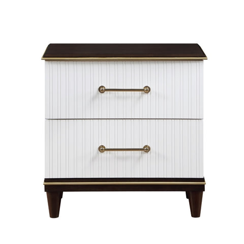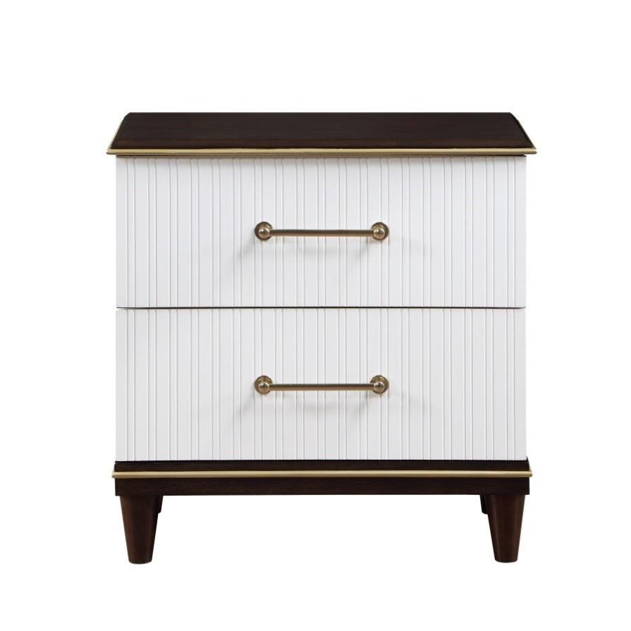 Contemporary White and Cherry Finish 1pc Two Drawers Nightstand 2-Tone Finish with Gold Trim Modern B011P149132
