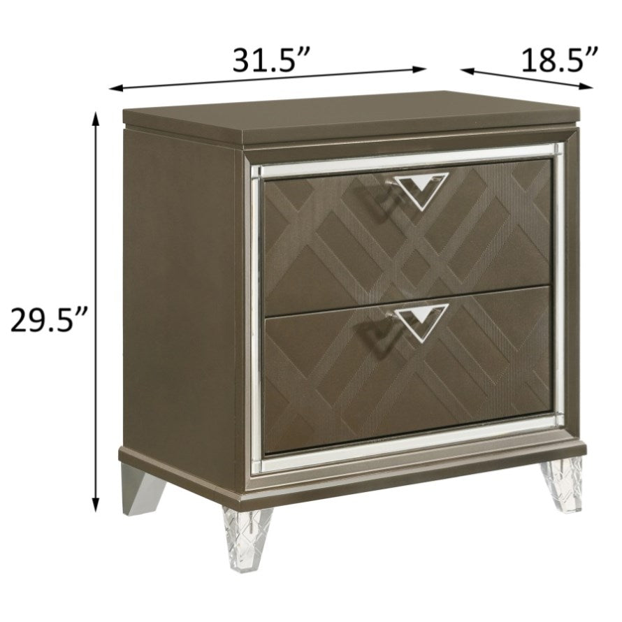 This nightstand adds a glamorous touch to your bedroom with its mirror trim and acrylic legs, while two drawers provide ample storage and safety stops to prevent accidental falls. Each drawer features a single pull metal knob for easy access, and its sleek, modern design complements any décor style.