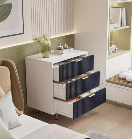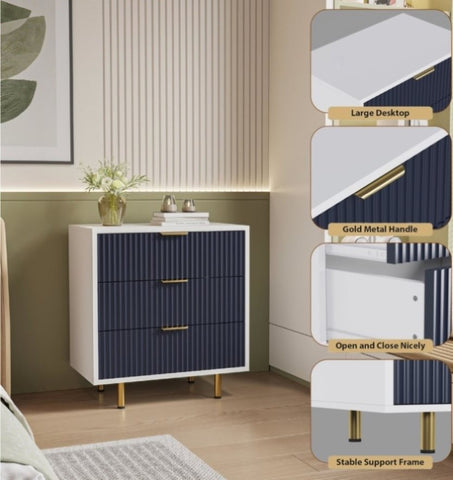 DFW 3 Drawer Dresser for Bedroom, Fluted Modern Nightstand with Deep Drawers, Chest of Drawers with W2301P301004