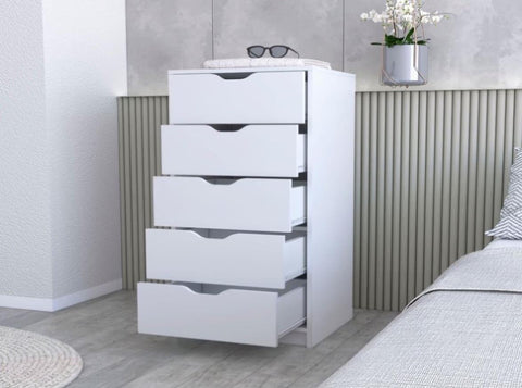 "Introducing the Dillon Narrow 5-Drawer Dresser! This perfect piece of furniture is ideal for anyone looking for a stylish and functional solution to their storage needs. At only 17.7 inches wide, this dresser fits snugly into any space, making it the perfect addition to any room in your home. And with five oversized drawers, there is plenty of room to store all your clothes and accessories. The durable construction and unique finishes make this dresser an excellent choice for anyone who wants a stylish and functional piece of furniture that will last for years.