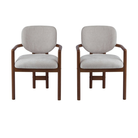Dining Chairs Set of 2 Upholstered Arm Chairs, Rubber Wood Accent Chairs Beige Fabric Seating, 300 N779P233060B