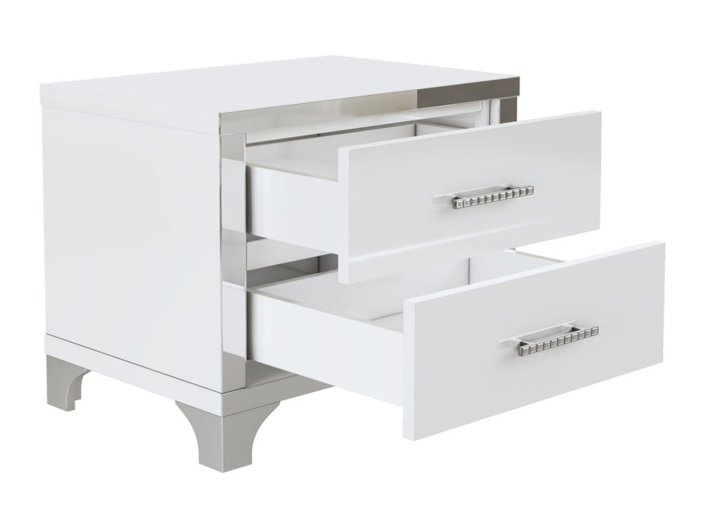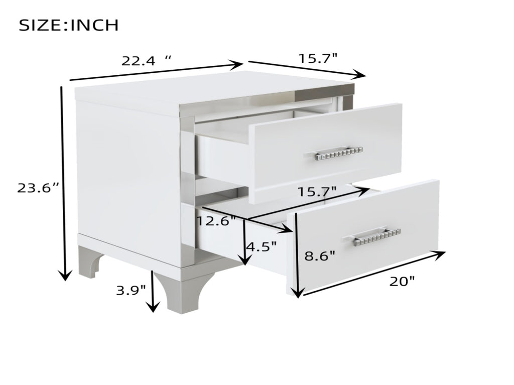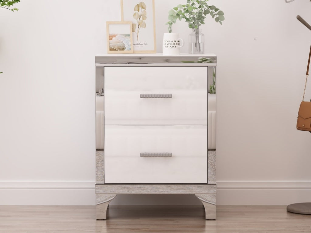 Elegant High Gloss Nightstand with Metal Handle,Mirrored Bedside Table with 2 Drawers for 20717890