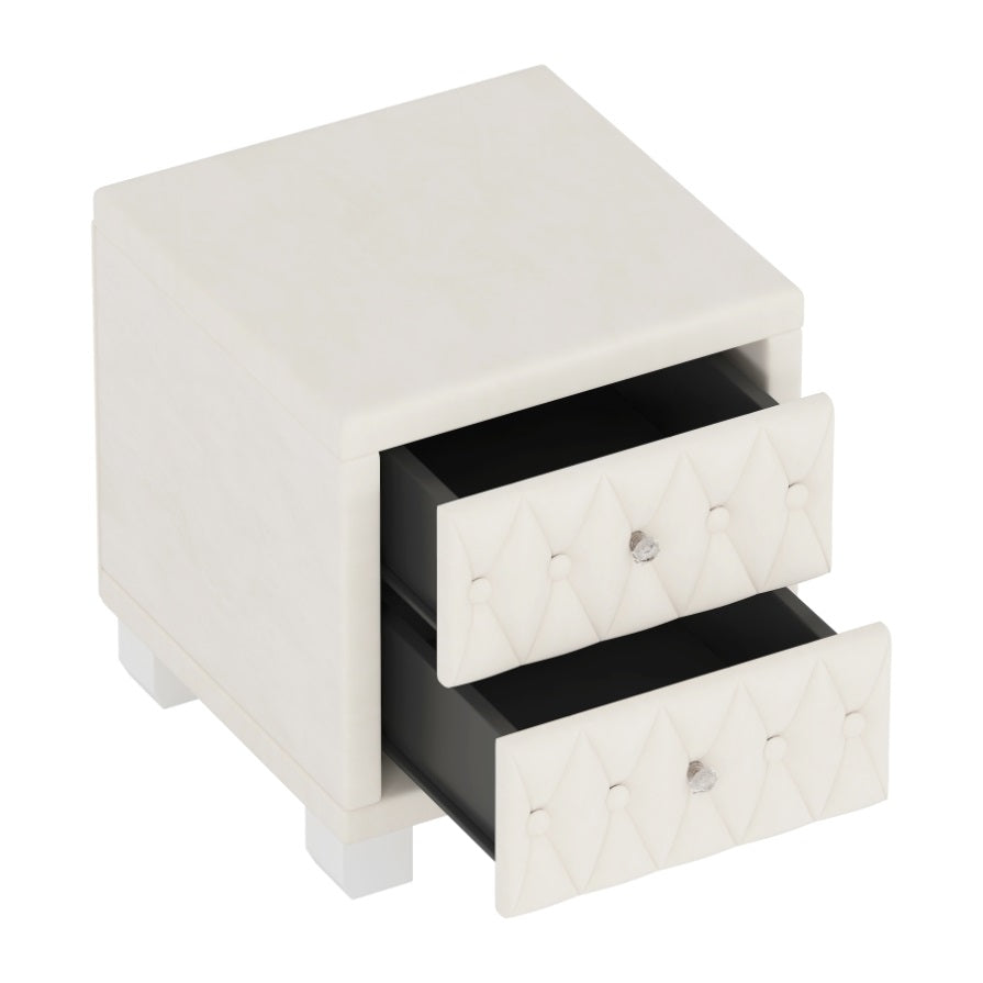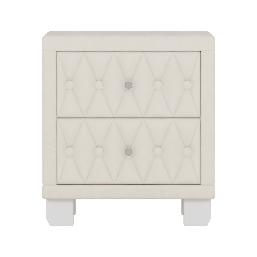 Elevate your bedroom with this nightstand, a perfect blend of sophistication and functionality. Featuring a soft, luxurious velvet finish, this bedside table boasts two spacious drawers adorned with sparkling crystal handles, adding a touch of glamour to any interior. The button-tufted design enhances its timeless appeal, while the sturdy construction ensures durability. With ample storage space, it's ideal for keeping essentials close at hand while maintaining an uncluttered look. Whether placed beside your bed or in a living area, this stylish nightstand is both a practical and elegant addition to your home decor.