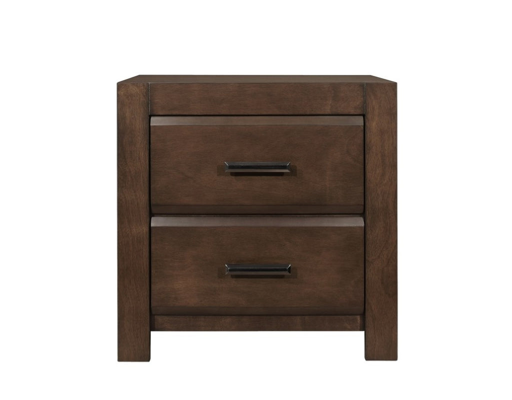 Taking a nod from contemporary design, the look of the Erwan Collection is a versatile choice for the modern home. A rich espresso finish highlights the okume veneer and beveled drawer fronts of the nightstand which are punctuated with gunmetal finished hardware and bold framing.