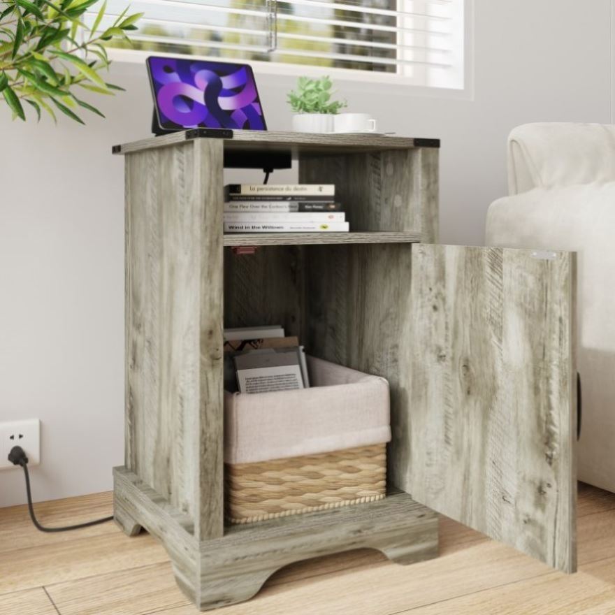 Ample Storage Space: With a large cabinet for storing accessories, a convenient top surface for holding a hot cup of tea, and an open shelf for displaying knickknacks, this end table offers generous hidden and open storage.
