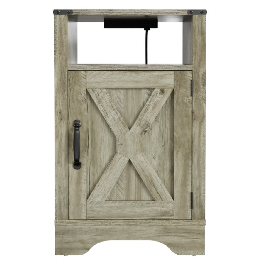 Farmhouse Nightstand Side Table, Wooden Rustic End Table, Tall Bedside Table with Electrical Outlets B082134938