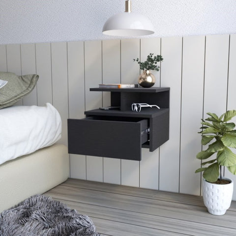 Floating Nightstand Flopini, One Drawer, Black Wengue Finish B092123117