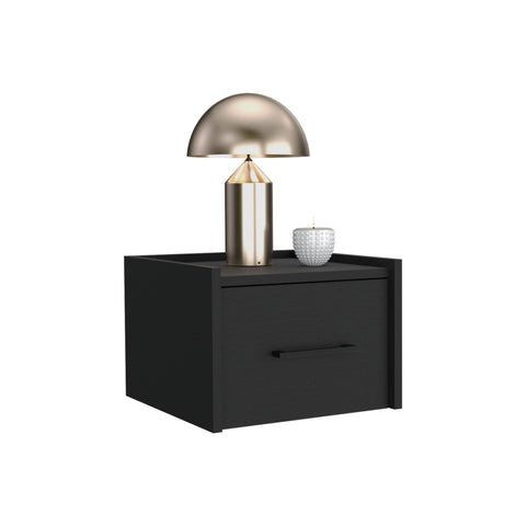 Floating Nightstand, Space-Saving Design with Handy Drawer and Surface, Black B097P163093