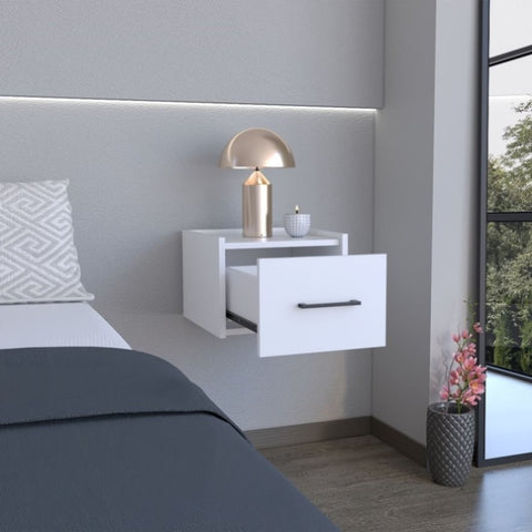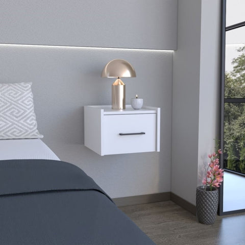 Floating Nightstand, Space-Saving Design with Handy Drawer and Surface, White B097P163089