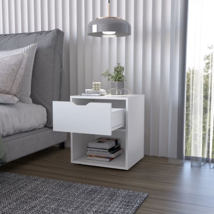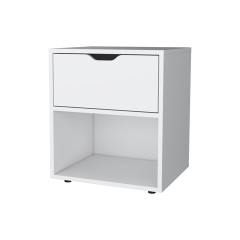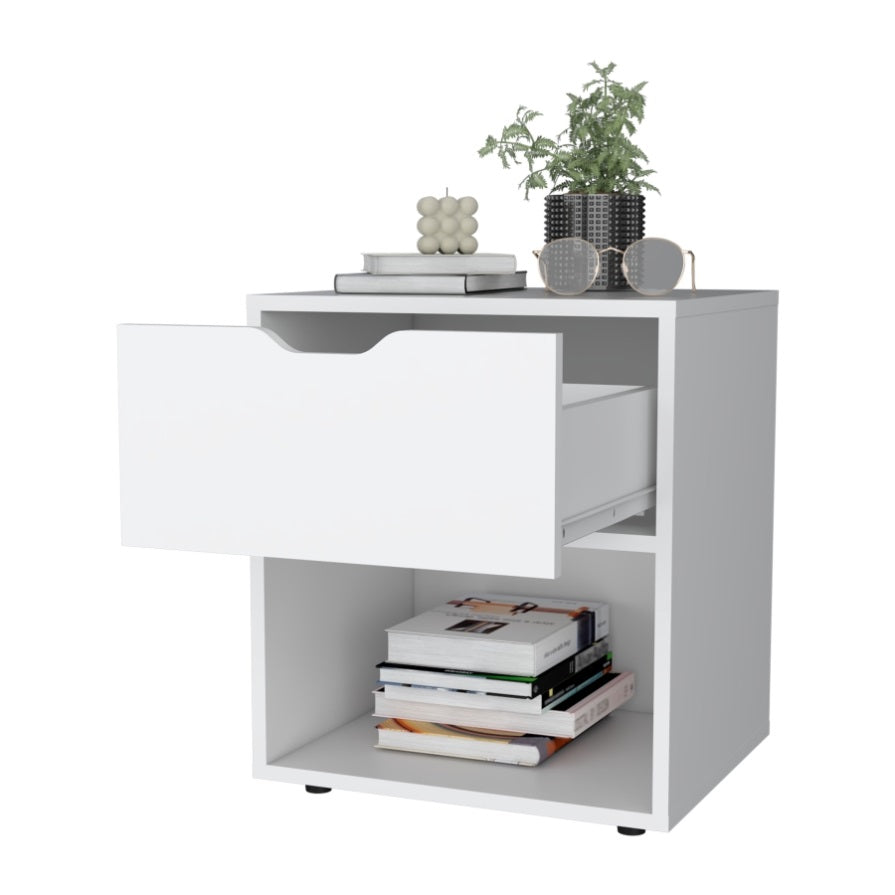 FM FURNITURE Elliott Nightstand with Elegant Drawer and Open Shelf, White B128P321064