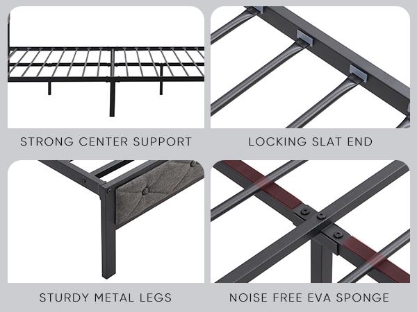 Sturdy & Noise Free Design: Full bed frame with headboard and storage made of sturdy metal structure, 17 heavy duty metal slats and 11 support legs provide optimal support for all types of mattresses without the use of box springs. we've added a special silent sponge bar to the center beam of this platform bed to eliminate friction between the metal components to ensure your sleep environment, Sleep or be active in this bed without being disturbed by noise.