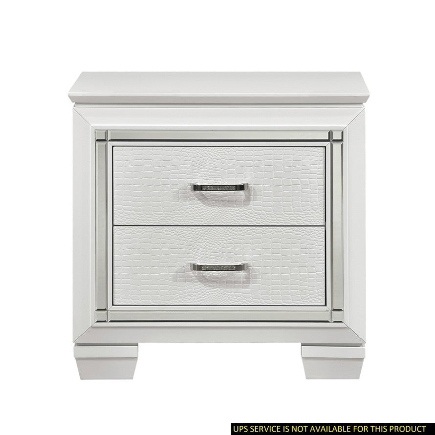 Glamorous Design Bedroom Furniture 1pc Nightstand of 2x Drawers White Finish Faux Alligator Embossed B01165196