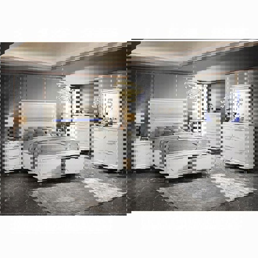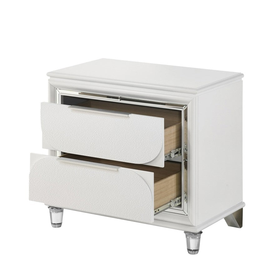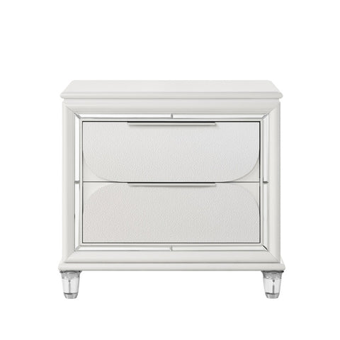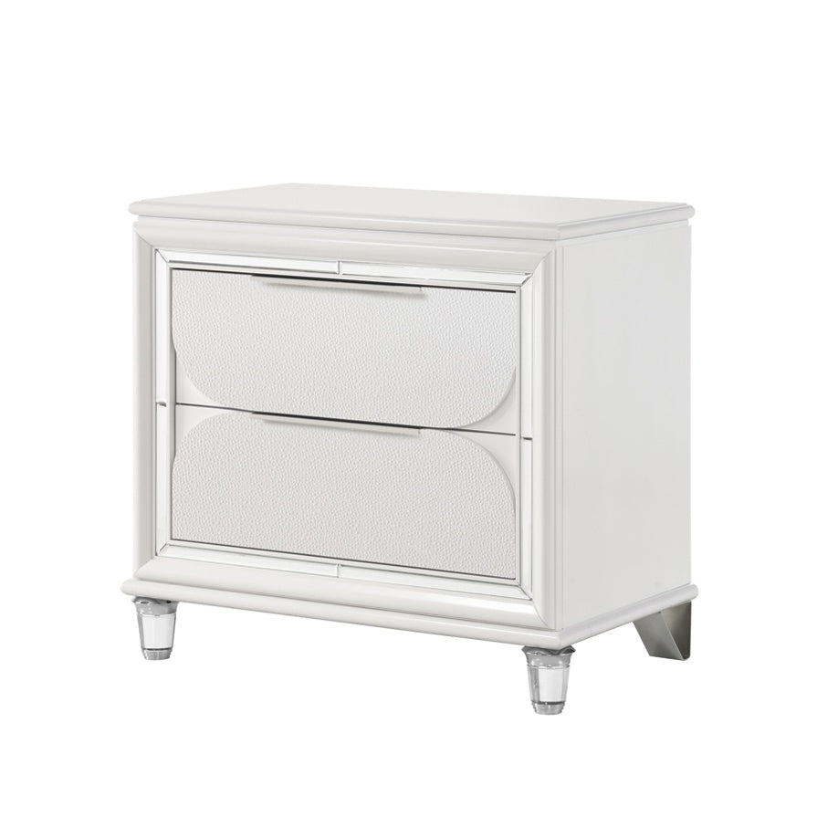 Glamorous Pearl White Finish Nightstand with Drawers Storage Durable Acrylic Legs Wooden Modern B2741P324365