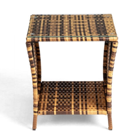 Glass Surface Yellow Gradient Iron Frame Rattan Side Table 64081006