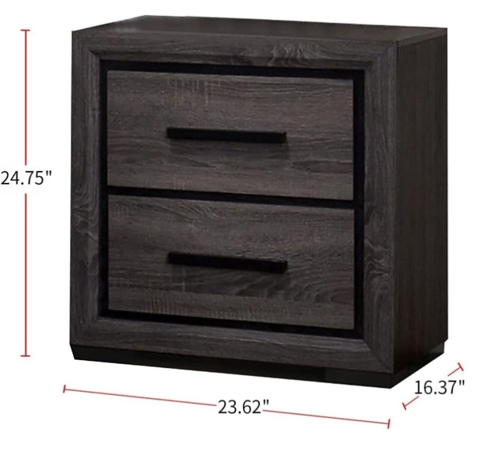 Gray 1pc Nightstand Bedroom Furniture Bedside Table 2-Drawers Two-tone Design w/ Black Trim Paper B011P222864