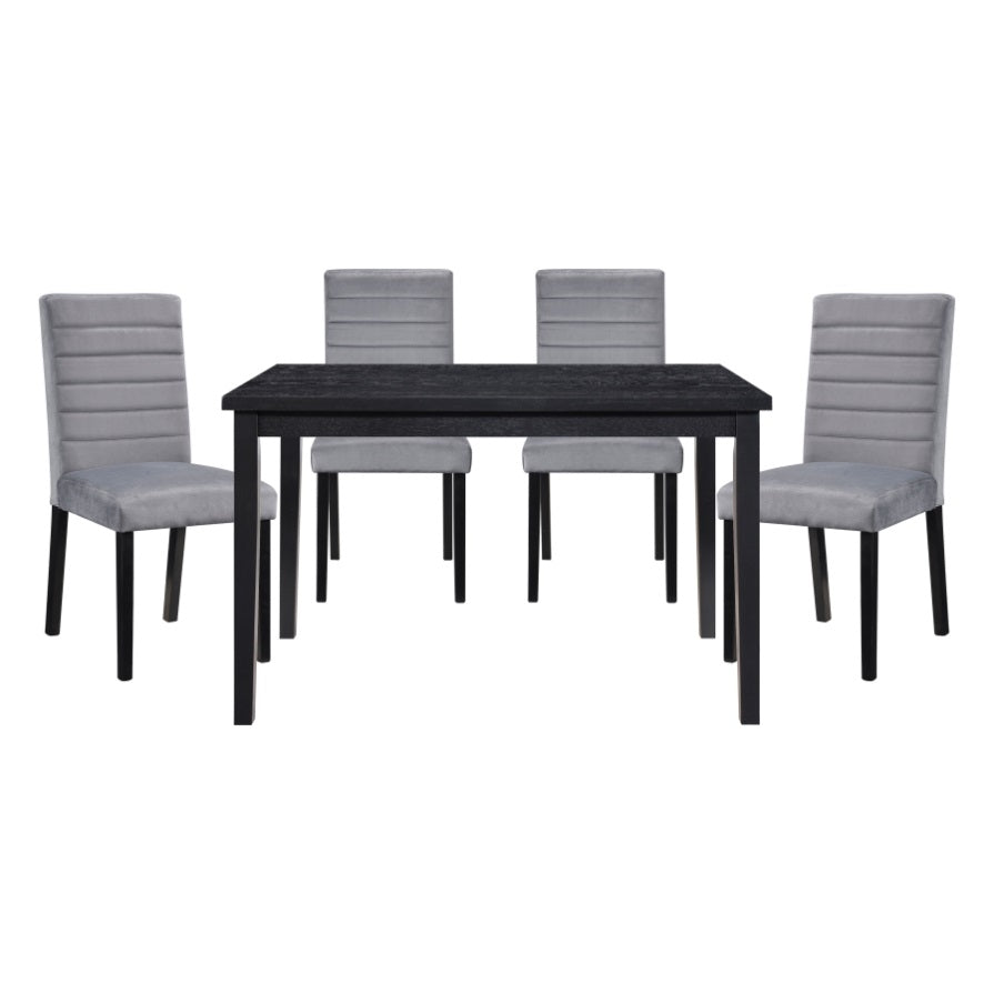 The design of the Andreas Collection is scaled for the perfect addition to your casual dining space. The legs of the side chair feature a black finish over ash veneer highlighting its distinct veneer, while the grey upholstered fabric of the chair features horizontal contouring and modern profile.