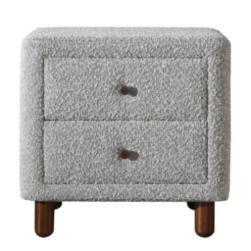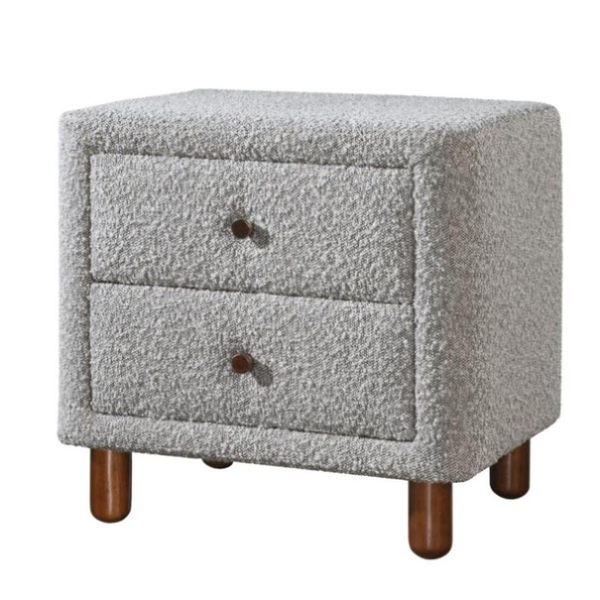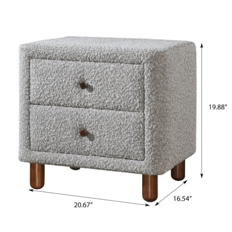 Grey Boucle 2-Drawer Upholstered Nightstand B062P209004