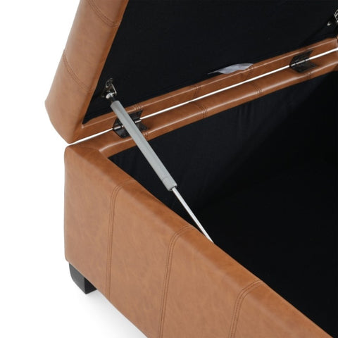 STORAGE SPACE: This ottoman comes with ample storage space for all of your pillows and blankets. This uses pressure hinges so that the lid will stay open on its own and will also ensure a soft close.