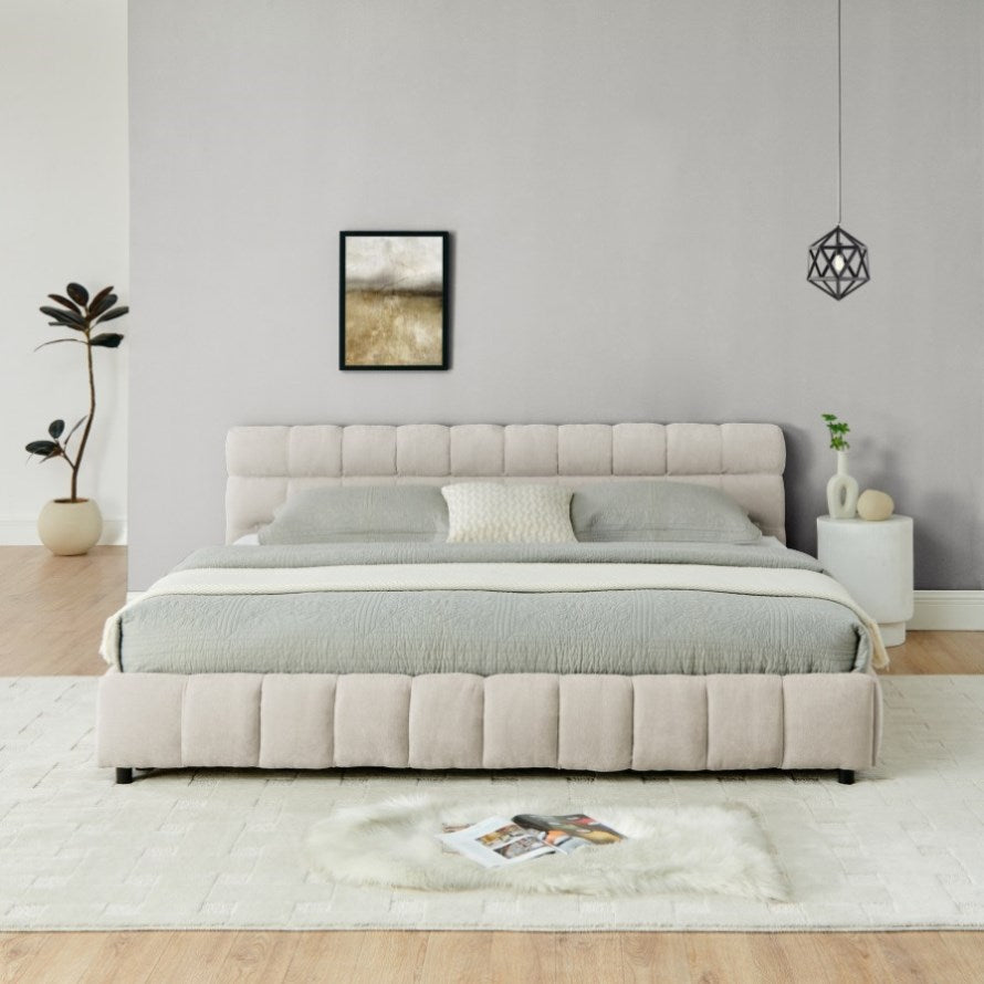 King Size Upholstered Bed ,comfortable upholstered bed frame, Chenille fabric, with headboard and W487P235315