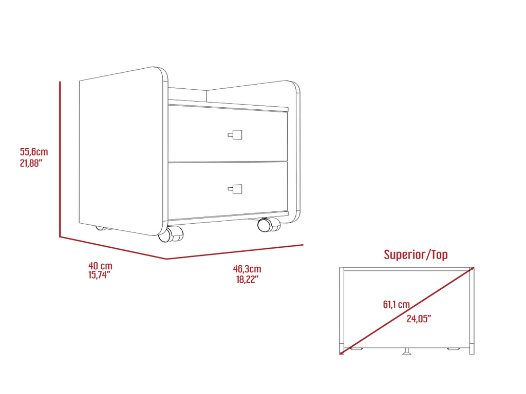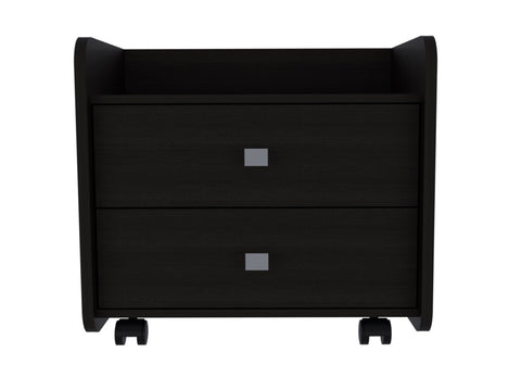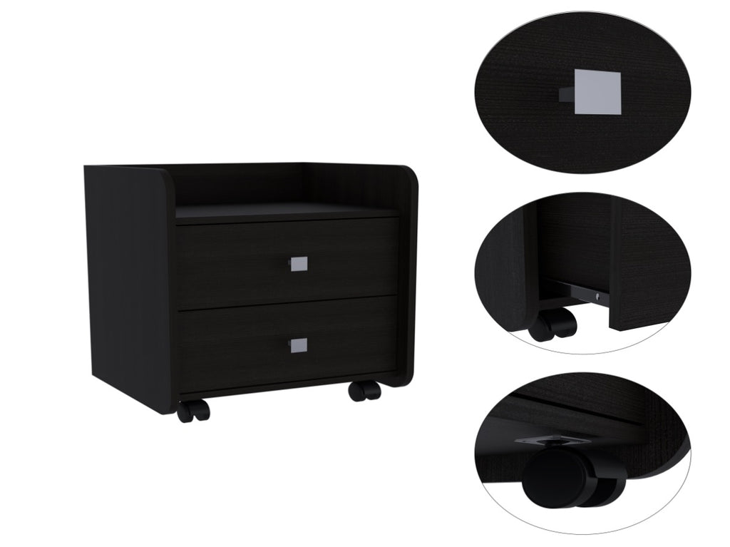 Embrace modern style and multi-functional versatility with this two-drawer nightstand, featuring a caster base for easy mobility. Its raised sides provide a secure space for decor and essentials, making it perfect for organizing your bedroom, children's room, or living room.