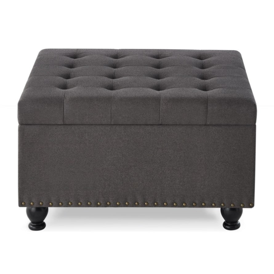 Large square storage ottoman with wooden legs, Upholstered button tufted coffee table with nail W2186142957