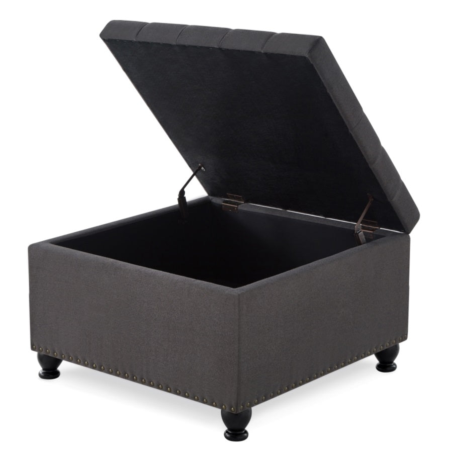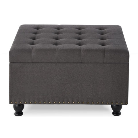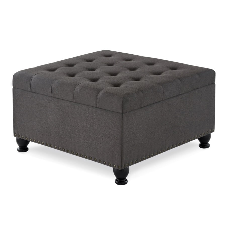 Large square storage ottoman with wooden legs, Upholstered button tufted coffee table with nail trim