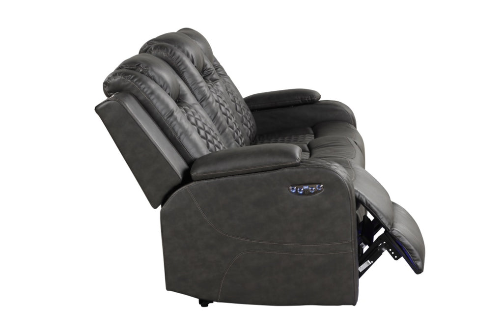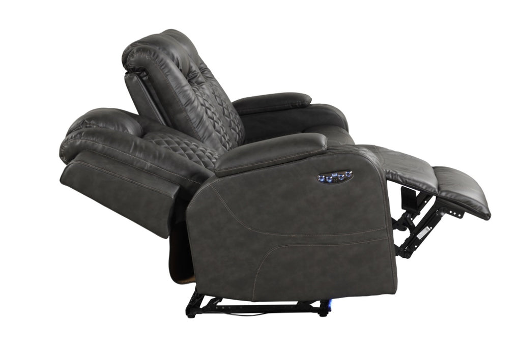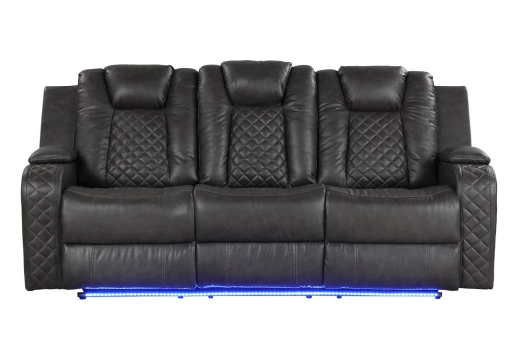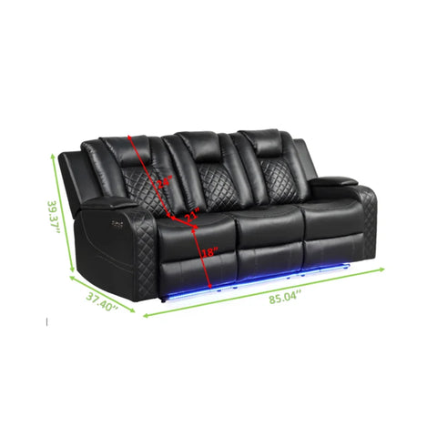 LED & Power Reclining Sofa Made With Faux Leather in Black 659436482487