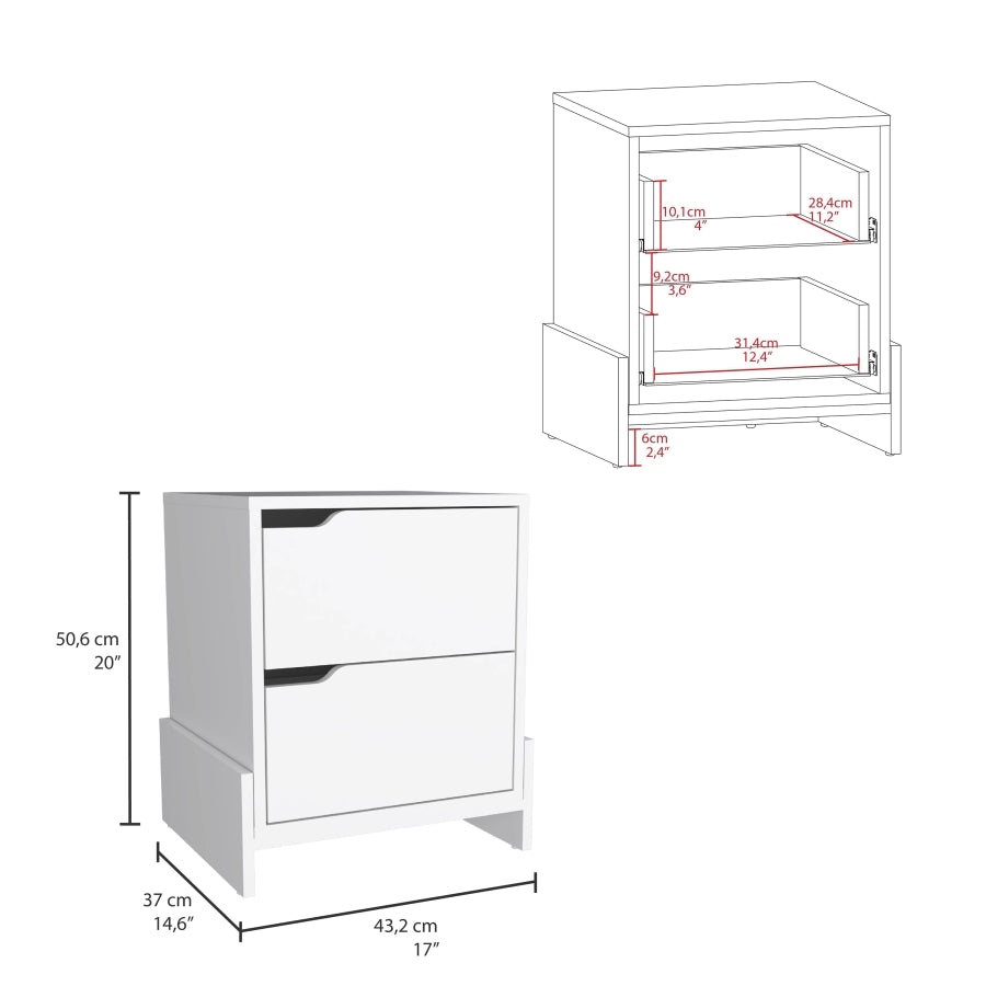 Luss Nightstand, Bedside Table with 2-Drawers B070P188859