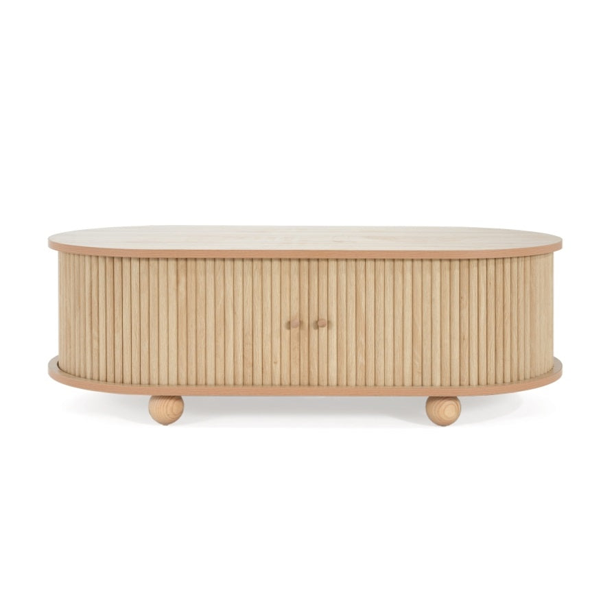 MDF ELEGANT LONG OVAL STORAGE SIDE TABLE WITH RETRO CHARM, NATURAL COLOR N770P281568N