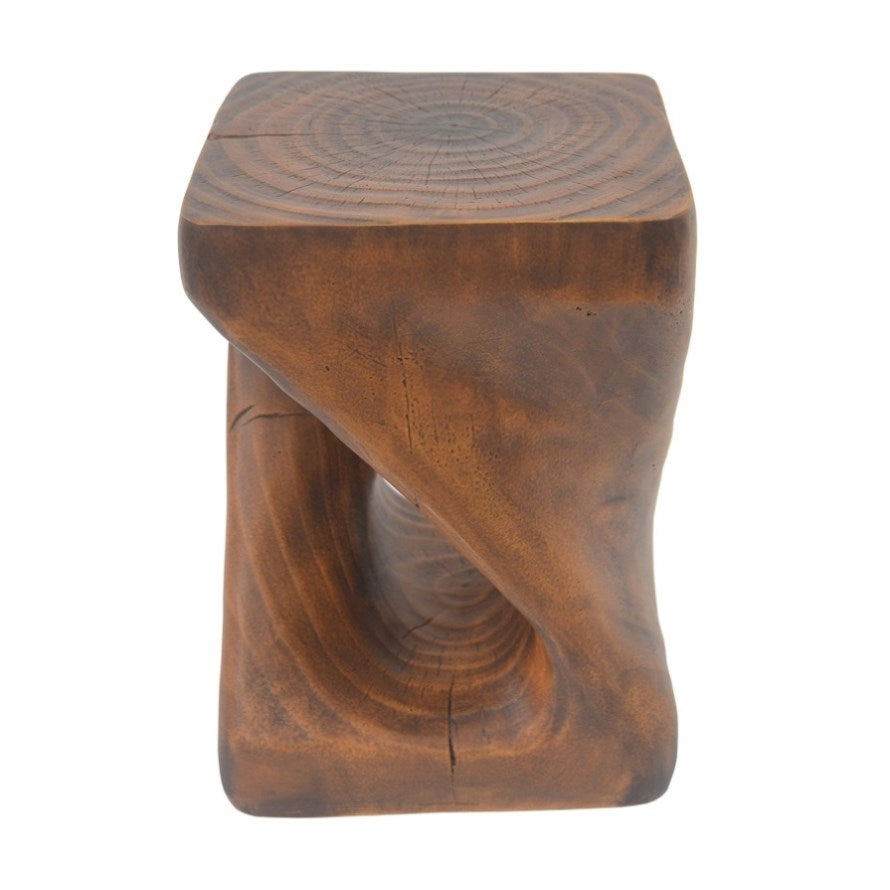 UNIQUE DESIGN: This attractive side table is uniquely shaped with a twisted spiral with a hollow interior. The surface has been treated to imitate a wood grain. These characterizing features make it both artistic and natural. The texture of the surface on each side table is distinct, which makes them each unique.