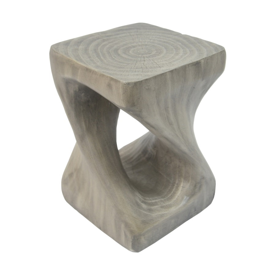 UNIQUE DESIGN: This attractive side table is uniquely shaped with a twisted spiral with a hollow interior. The surface has been treated to imitate a wood grain. These characterizing features make it both artistic and natural. The texture of the surface on each side table is distinct, which makes them each unique.