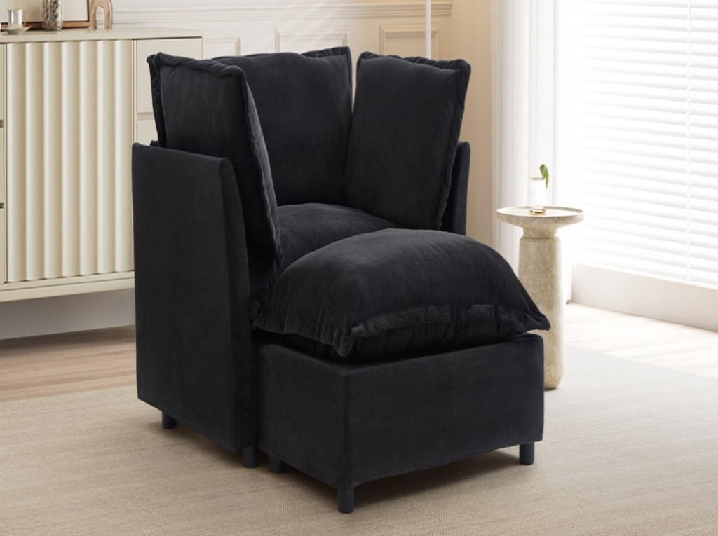 Movable Ottoman - This set includes a generously padded chair and a movable ottoman that can be positioned freely for customized comfort. Use it as a footrest, an extra seat, or pair it with the chair to create a cozy lounging setup.