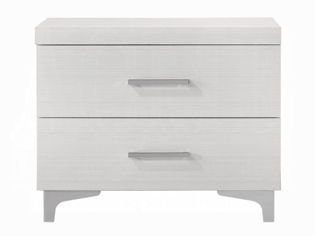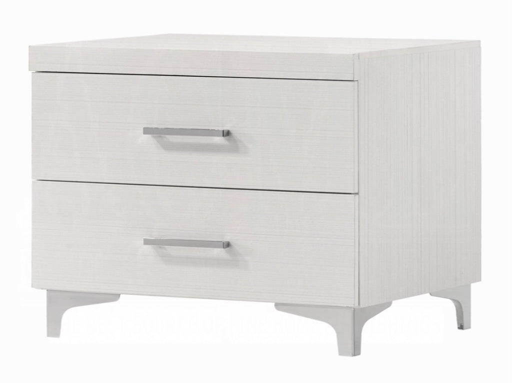 Modern Contemporary Bedroom Furniture White Finish Nightstand of 2x Drawers Metal Legs Wooden 1pc B011P316891