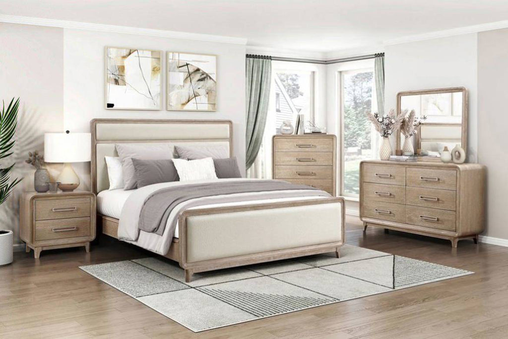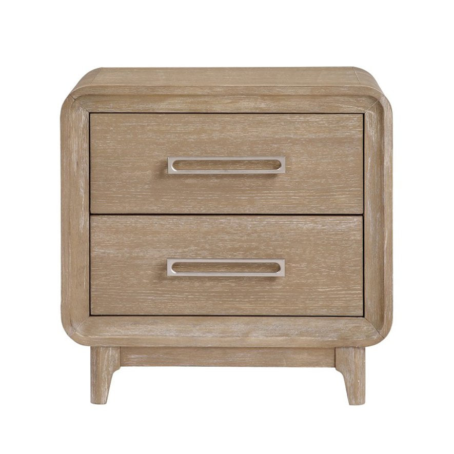 Modern Elegant Design Nightstand of 2x Storage Drawers Curved Corners Natural Finish Wooden Bedroom B011P332261