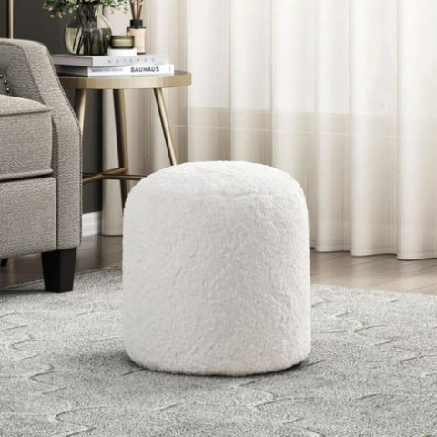 Modern Pouf Off-White Faux Fur Fabric Upholstered Ottoman, Footstool, Non-Slip Floor Pouf, Bean Bag B011P251654