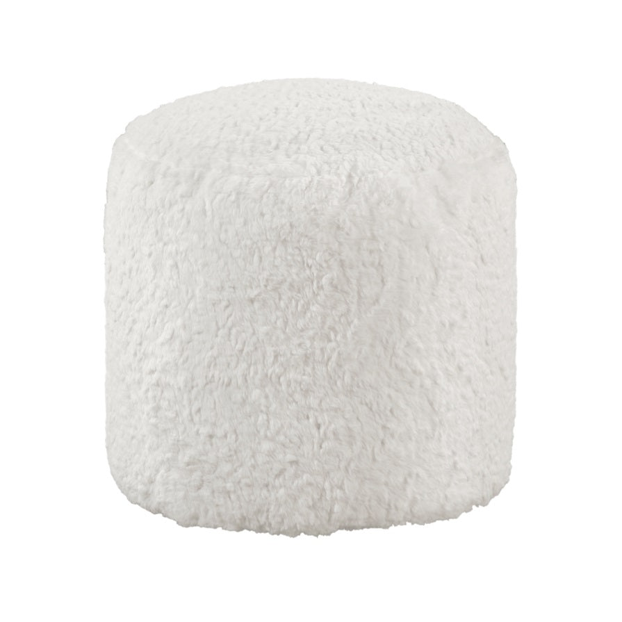 Whether the Nice Collection serves to provide stylish accent to your home’s décor, convenient seating when the need arises, or as perfect place to put up your feet, the cylindrical accent pouf’s versatility of purpose makes it a convenient addition to your space. The pouf is covered in off-white faux fur fabric upholstery.