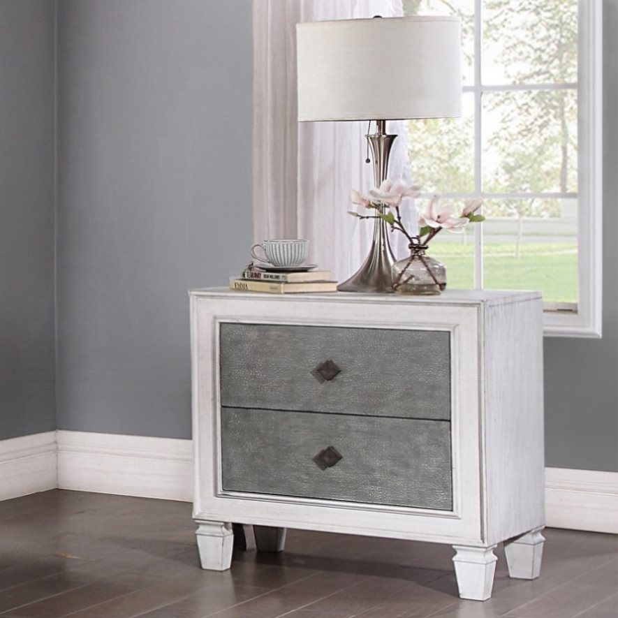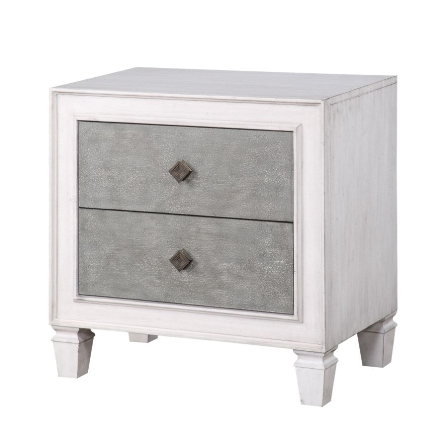Modern Rustic White and Gray Finish 2-Drawers Nightstand Wooden Bedroom Furniture 1pc Farmhouse B2741P324354