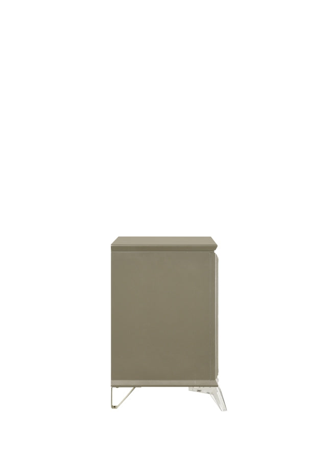 This wood nightstand is a functional addition to your bedroom decor. Two drawers provide convenient bedside storage, and the wood drawer handles with mirror accents echo the collection's design theme. With transparent acrylic legs that create an enchanting levitating effect, this nightstand combines practicality with a touch of magic.