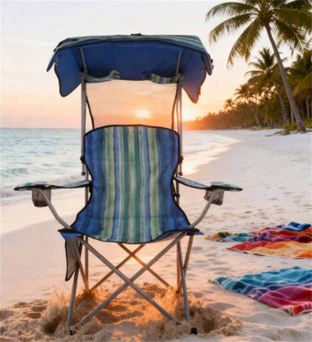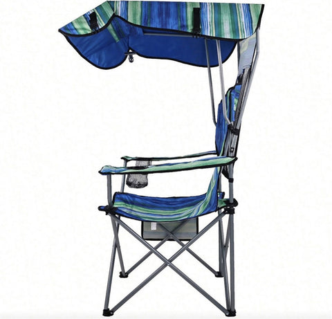 ● FOLDING OUTDOOR CHAIR - Portable beach, camp, or lawnchairwith a higherarched back and22.8"wideseat,patented tilt shade canopy,convenient carry bag,and mesh